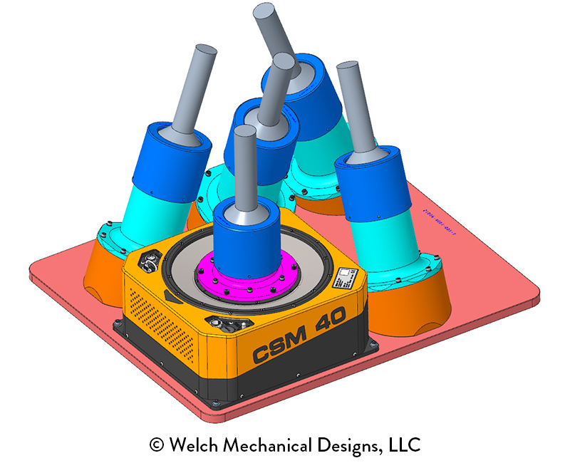 This 23" x 20" telescope assembly is mounted on the underside of an aircraft. The 5 receiver apertures allow lidar collection at multiple angles far from Nadir.